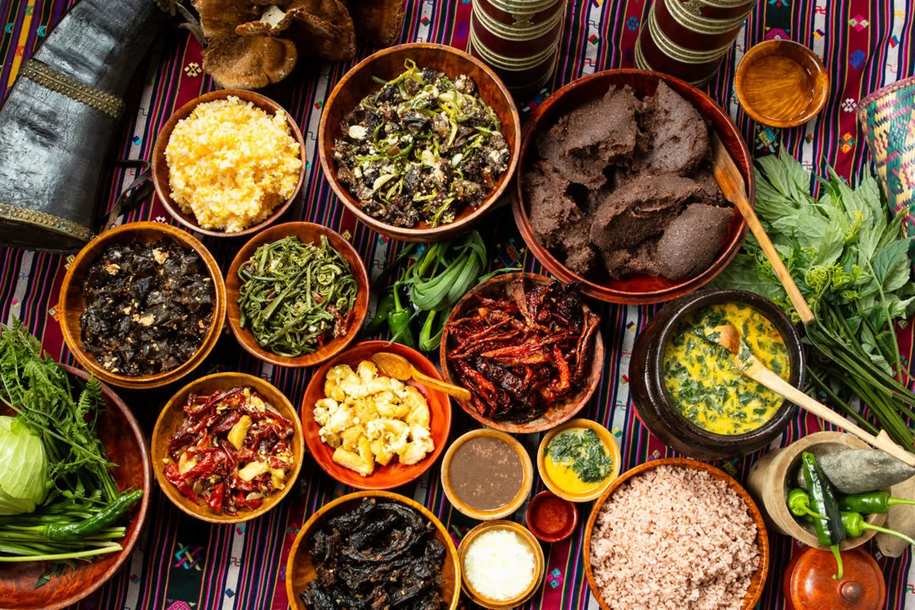 The food of Bhutan takes your palate to a world of spices. Its perfect blend is a sensory treat that everyone must experience at least once in their lifetime. The diversity of taste and texture is wide. The culinary delights are influenced by India, China, and Tibet, but the local dishes remain unique. The most distinctive characteristic of Bhutanese food is its spiciness, with chillies being an essential part of nearly every food item. Additionally, delicious local cheese called Datshi makes its presence in almost every dish. Nearly all vegetarian delights are cooked with it, and hence their names always end with it.